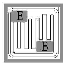 芯片背極為集電極,基極與發射極的鍵合點位置見右圖