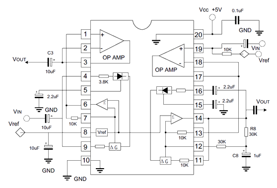 UTC575是一個專為低壓應用設計的精密的雙增益控制語音壓擴電路。它的一個通道可應用于擴展器,另一個通道既可以應用于擴展器、壓縮器又可以應用于自動電平控制,內含整流器、可變增益單元、運算放大器等電路,適用于無線麥克風、無線電話等設備中作語音壓縮與擴展。